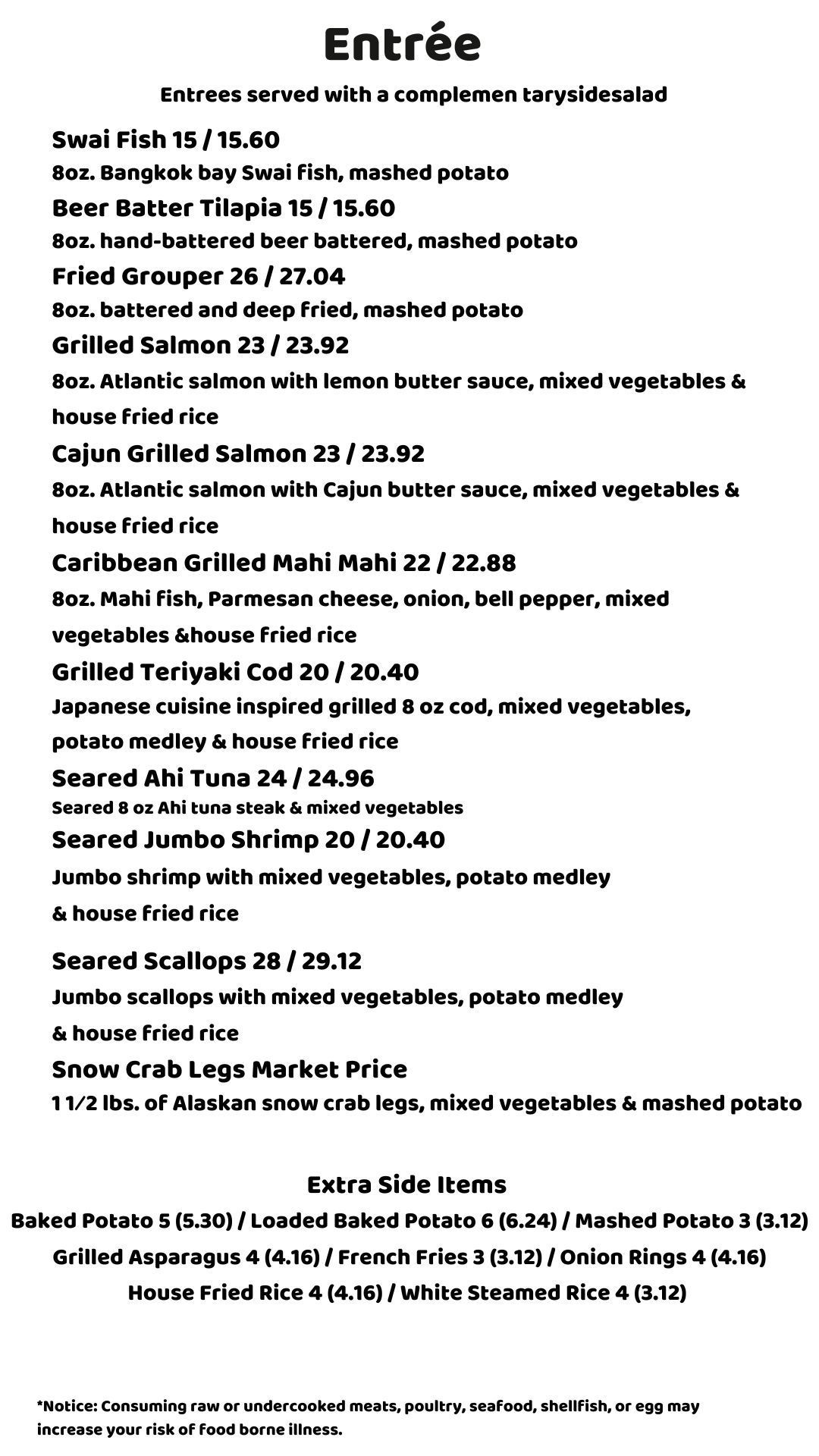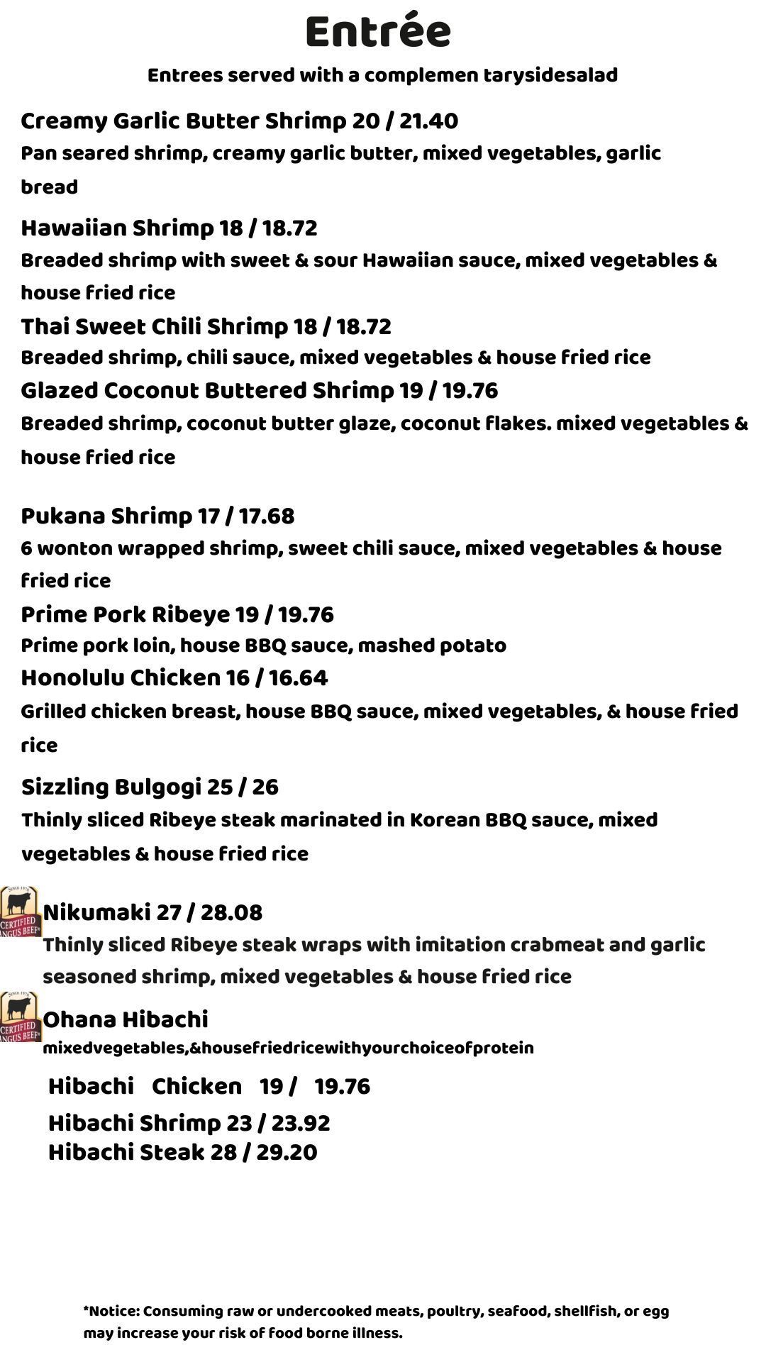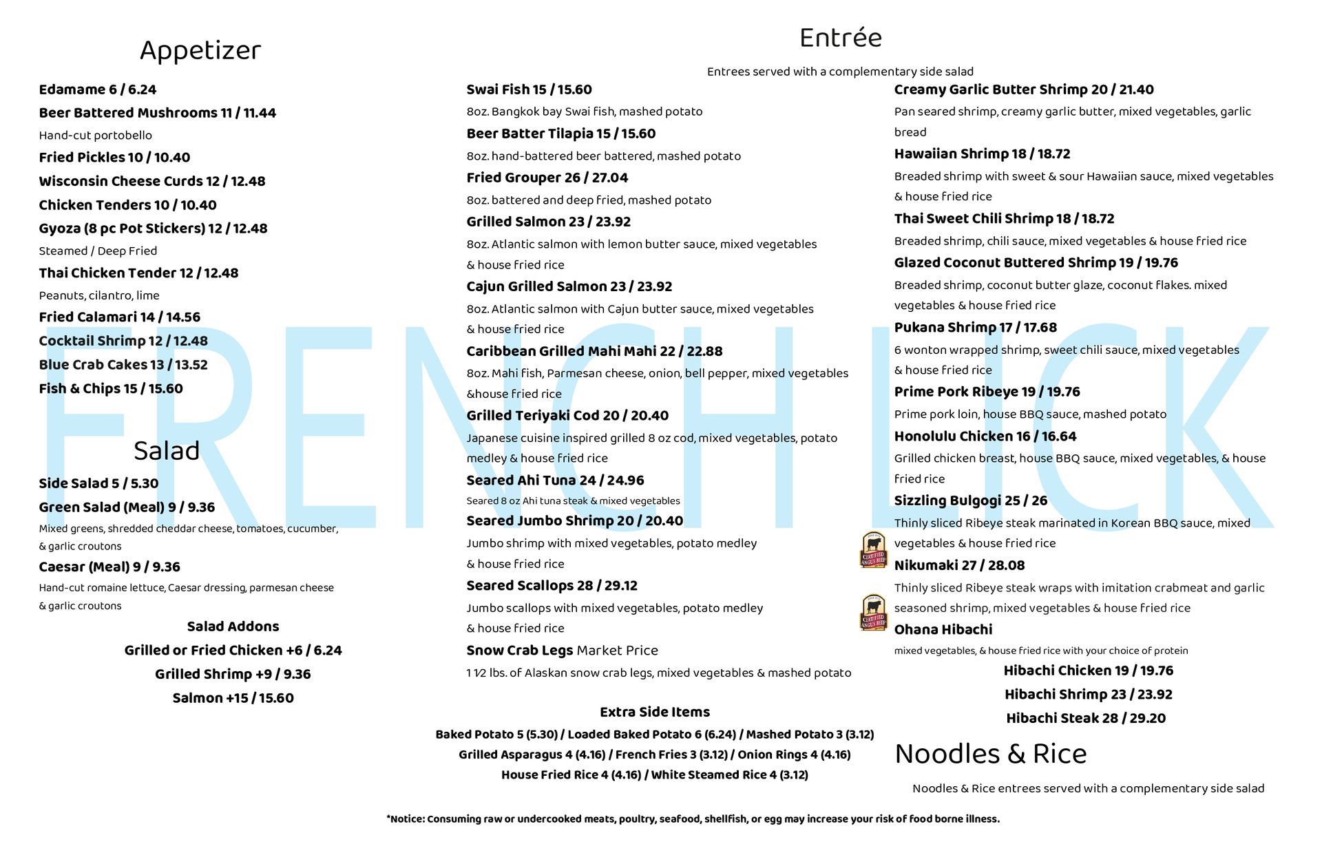 *Notice: Consuming raw or under-cooked meats, poultry, seafood, shellfish or egg may increase your risk of food borne illness.