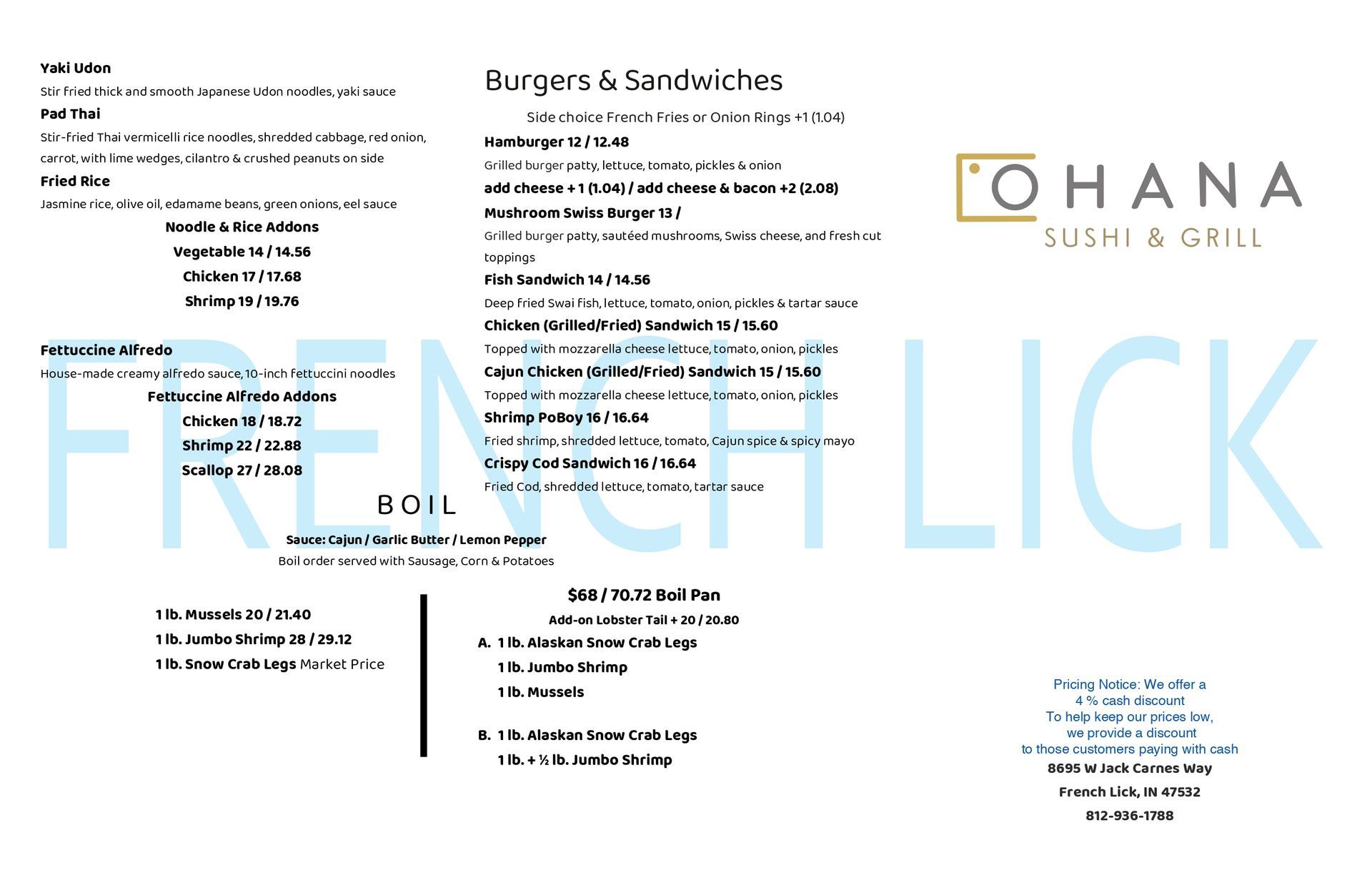 Call Ahead And Order Your Meals To-Go At The French Lick Location!